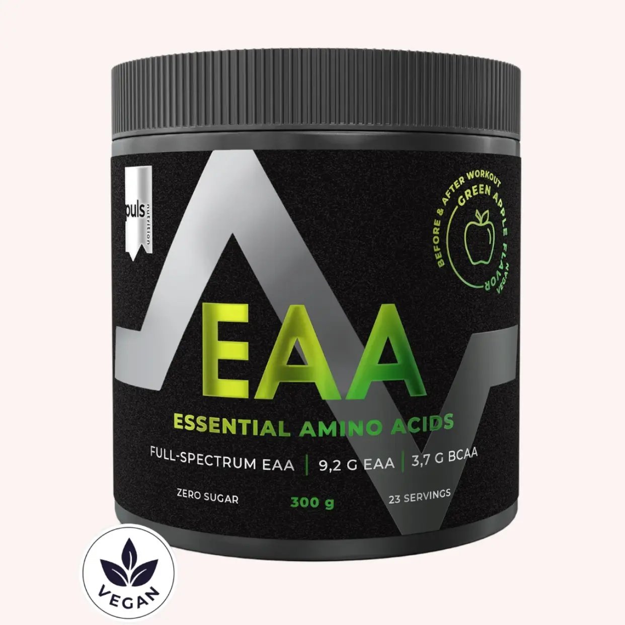 Les EAA, ou acides aminés essentiels, forment un groupe de neuf acides aminés que le corps humain ne peut pas produire naturellement. Contrairement aux acides aminés non essentiels, ils doivent donc être apportés par l’alimentation ou via un complément, comme la poudre EAA Puls Nutrition.